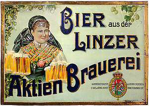 Nachdem in unser Region durch die Klimaverschlechterung der Weinbau zurückging und den Wein verteuerte, trat das Bier, das geschmacklich stetig verbessert wurde, ab der Mitte des 16. Jahrhunderts seinen Siegeszug an. Bereits im Jahre 1362 erteilte Erzherzog Rudolf IV. von Österreich den Linzern das Bannmeilenrecht: „niemands um Linz inwendig einer ganzen Meil kein Schankhaus seyn darf.“ Auch in Linz hatte, wie in jeder anderen Stadt des Landes, ein jeder Vollbürger das Braurecht auf seinem Haus. Nahe dem Wasser an der Unteren Donaulände, die bis 1840 „Brauhauslände“ hieß, entstanden die ersten Brauereien. Die Lage war günstig: einerseits gab es die Donau für den Gütertransport, andererseits wurde die Innenstadt bei entstehendem Feuer durch die Windrichtung nicht gefährdet. Eine eingemauerte Marmortafel am Eingangstor des Hauses Adlergasse Nr. 8 mit Zunftzeichen, Familienwappen und der Inschrift „Das paw hat volpracht wenczla prewer purger czw lincz 1463“ bezeugte einst den Standort einer der ältesten Linzer Brauereien. In diesem Haus befand sich – bis es 1939 abgetragen wurde – das Gasthaus „Zum Goldenen Adler“.