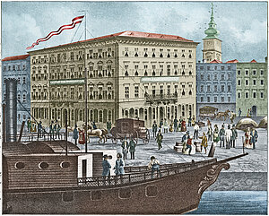 Bald kam es zu einem Übereinkommen beider Donaudampfschifffahrts-Gesellschaften: sobald wie möglich sollten so viele Dampfschiffe beschafft werden, dass zwischen Wien-Linz und Regensburg eine regelmäßige und ununterbrochene Verbindung gewährleistet war. Wohl romantisch verklärt für die Dampfschifffahrt ist jener 20. April 1854, an dem Franz Joseph seine per Schiff aus Bayern kommende Braut Elisabeth in Linz vor dem Hotel „Zum Rothen Krebs“ erwartete.