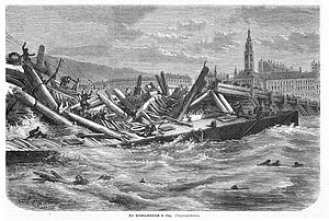 Der Dampfer „Thetis“ sollte am 5. Mai das eiserne Schleppschiff Nr. 292 mit einer Fracht von 6.000 Zentnern Weizen durch die hölzerne Linzer Donaubrücke stromaufwärts bringen. Dies war wegen des hohen Wasserstandes beschwerlich; das Schleppschiff wurde vom unteren Donaukai aus bis zur Brücke gezogen und an einem Joch festgebunden.