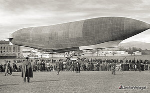 Am 18. März 1911 landete das Militärschiff „Lebaudy“ in Linz und sollte tags darauf wieder aufsteigen, um nach Fischamend zurückzufliegen. Ein heftiger Wind ließ dies nicht zu, sodass die Rückkehr auf einige Tage verschoben werden musste. Stürmisches Wetter hatte dem Luftschiff Schäden zugefügt, ein arger Windstoß riss dann im Ballon ein Loch, das immer größer wurde. Schließlich sank das stolze Luftschiff in sich zusammen. Das Wrack musste zum Umschlagplatz beim heutigen Lentos gebracht und dort auf einen Schlepper verladen werden. Zum Pionier der Luftfahrt in Oberösterreich wurde der flugbegeisterte Erzherzog Josef Ferdinand, der in Linz residierte. 1909 wurde unter seiner Patronanz der 450 Mitglieder zählende Oberösterreichische Verein für Luftfahrt gegründet. So wurde in Linz der Luftfahrt stärker gehuldigt als in anderen Städten. Meist fanden die Aufstiege vom Exerzierfeld im Linzer „Militärbezirk“ statt.